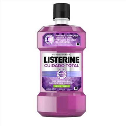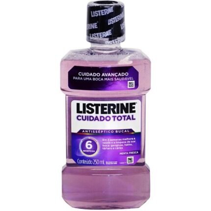 O antisséptico bucal Listerine Cuidado Total Zero Álcool o que conta com seus 6 benefícios que auxiliam em uma boca mais saudável em poucas semanas. Atua na prevenção das cáries, fortalece o esmalte, previne a placa bacteriana, reduz a formação de tártaro, mantém as gengivas saudáveis e o hálito fresco. Uso adulto. Indicado a partir de 6 anos.
