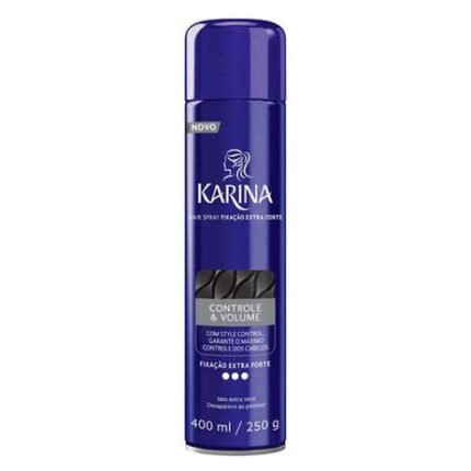 Spray Fixador para Cabelos Karina Extra Forte 400mlEnriquecido com Style Control, o Hair Spray Karina Controle e Volume garante o máximo controle dos cabelos com zero agressão aos fios.