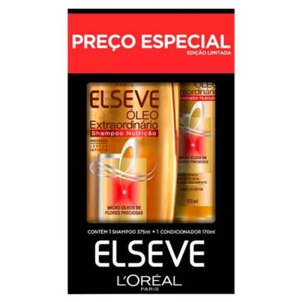 Kit Óleo Extraordinário com 1 Shampoo Nutrição de 375mL + 1 Condicionador Nutrição de 170mL – Elseve