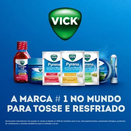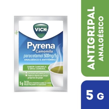 Vick Pyrena é indicado contra dores de cabeça, febre e dores no corpo próprias da gripe. Vick Pyrena (paracetamol) deve ser misturado na água ou no chá quente, não sendo necessária a adição de açúcar. Sua fórmula combina um eficaz analgésico/antitérmico, com sabor mel e limão. Alívio da gripe, Alívio da febre, Alívio da dor de cabeça, Alívio de dores musculares, Alívio desde os primeiros sintomas da gripe.